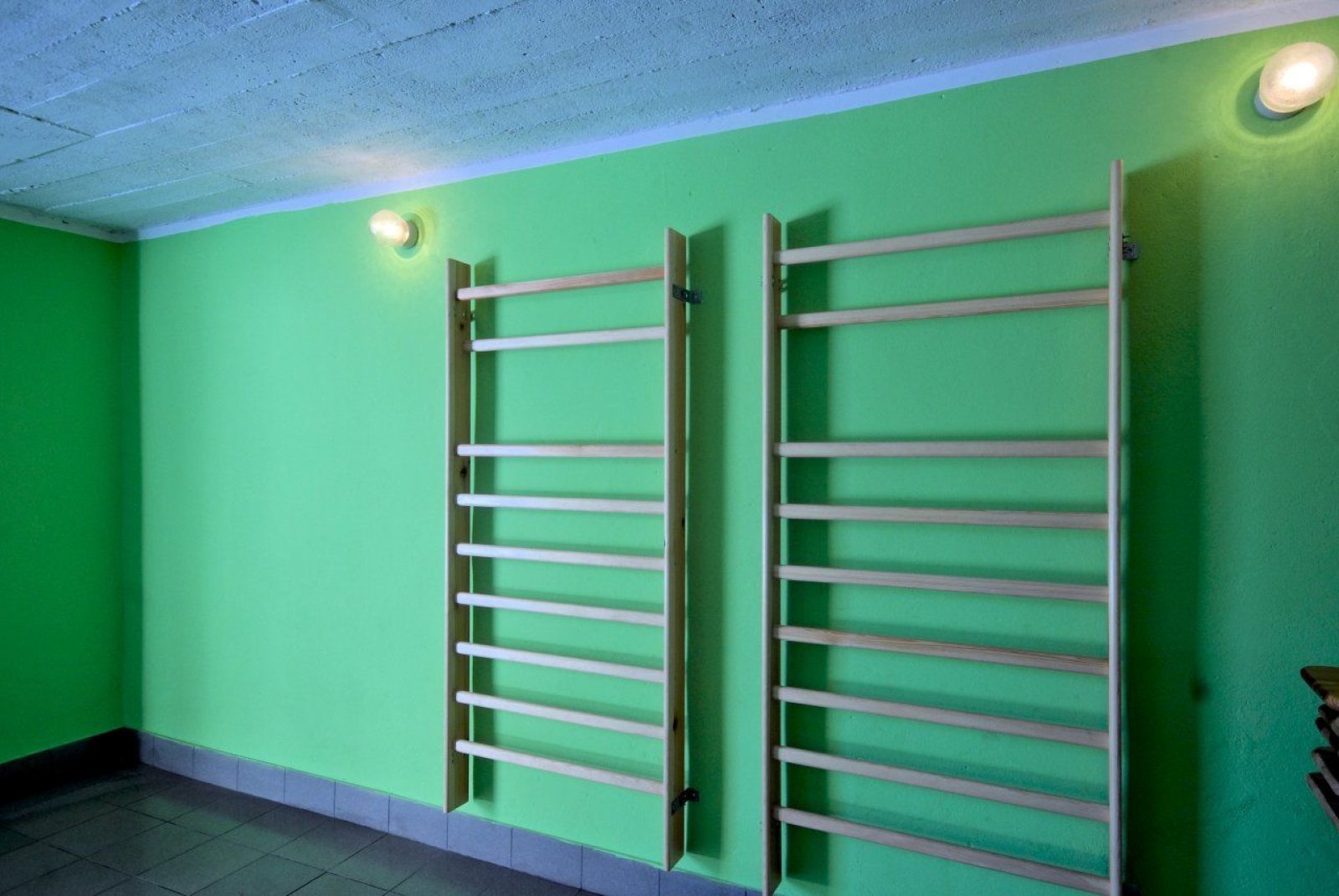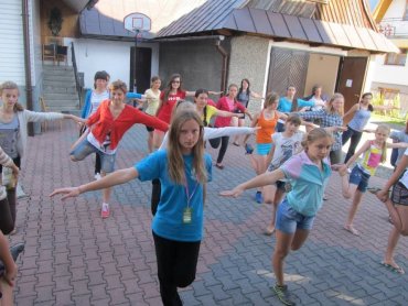 Wyposażenie pomieszczenia, drabinki, materace, sprzęt muzyczny, TV 32 cale do karaoke, Laptop, projektor multimedialny, kredki, farby, bloki, gry planszowe, zabawki, skakanki, itp., 4 lustra 2x1 do nauki tańca.